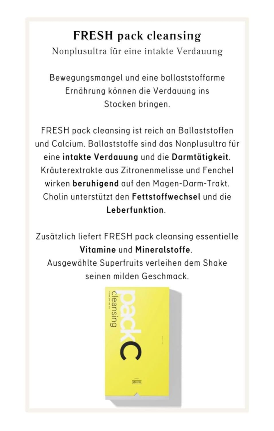 Hier setzt Pack C (FRESH pack cleansing) an.