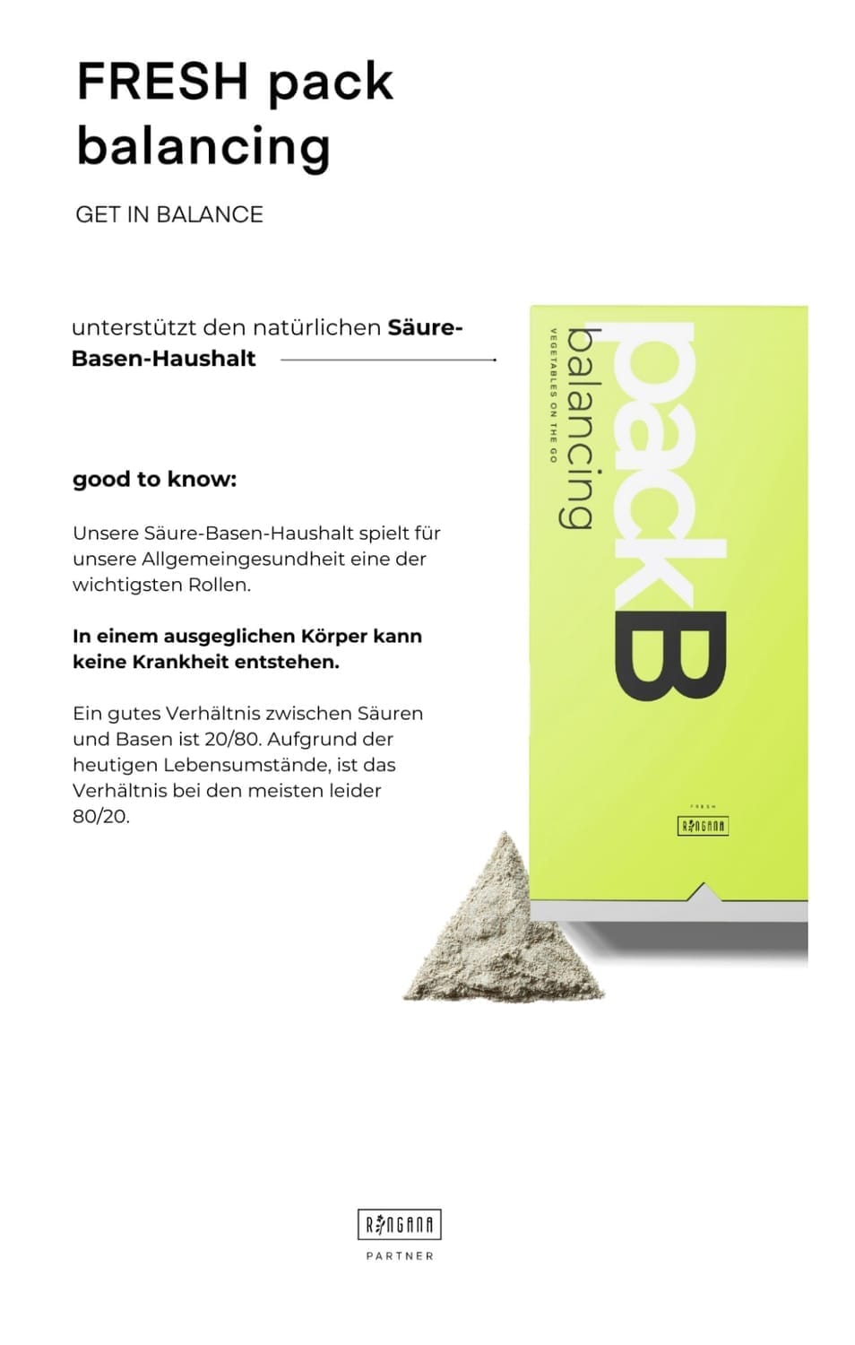 WICHTIGE HINWEISE Die angegebene empfohlene tägliche Verzehrmenge darf nicht überschritten werden. Nahrungsergänzungsmittel sind kein Ersatz für eine abwechslungsreiche und ausgewogene Ernährung und eine gesunde Lebensweise. Das Produkt ist für Erwachsene konzipiert und außerhalb der Reichweite von kleinen Kindern zu lagern. RINGANA PACKS sind keine Arzneimittel und sollen Arztbesuche nicht ersetzen. RINGANA PACKS sind nicht zum Behandeln oder Heilen von Krankheiten bestimmt. Wenn Sie unter ärztlicher Medikation stehen, Gesundheitsprobleme haben, stillen oder schwanger sind, konsultieren Sie vor der Einnahme Ihren Arzt.